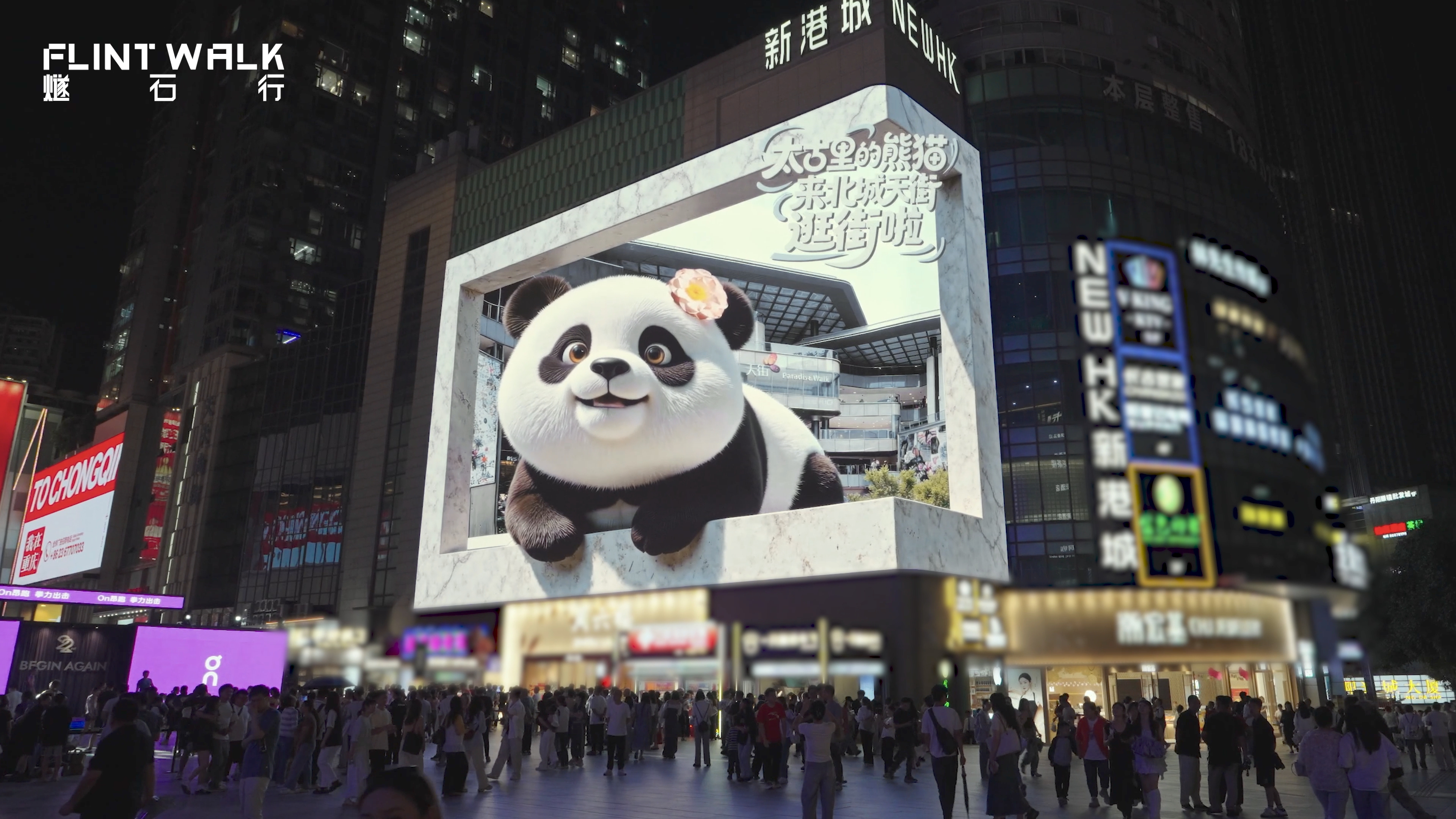 AI Panda & CatAcross Chengdu and Chongqing, two gentle figures appear—a panda basking on the Taikoo Li screen, a cat gliding through the city by light rail.